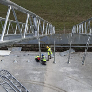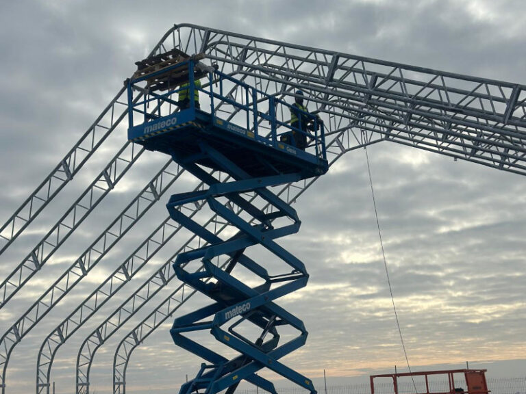 El montaje es complejo. Equipo requerido: elevador de tijera. Un equipo de tres personas montará el MAGNUM HS en cinco días. El hangar MAGNUM requerirá siete personas adicionales para reforzar la lona.