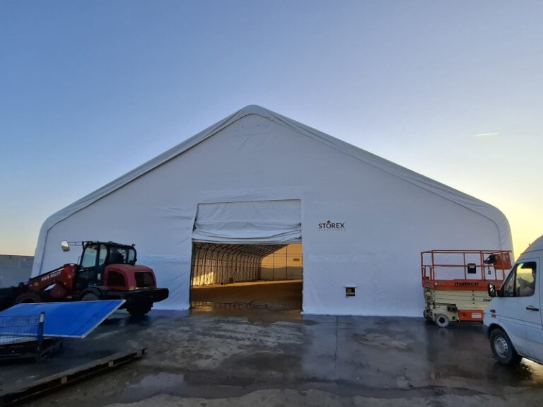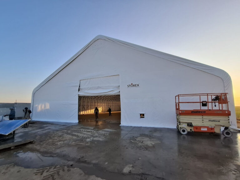 La carpa Storex modelo MAGNUM HS de lona se utiliza cuando se requiere un área de almacenamiento grande. EL MODELO MAGNUM es ideal para almacenar y reparar maquinaria utilizada para tareas agrícolas, de construcción u otras. El almacenamiento en lona puede ser la solución perfecta para almacenar maquinaria agrícola, grano, forraje, pacas de heno o incluso ganado.